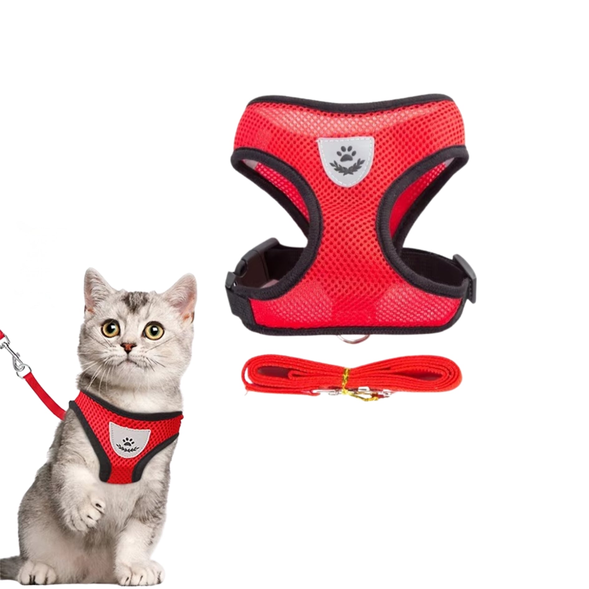 Harnais avec laisse pour chat et chien – Réfléchissant, réglable et confortable